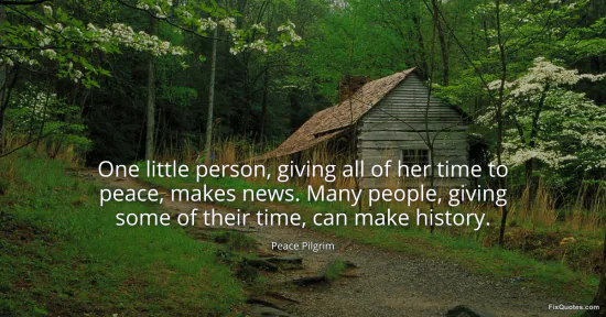 Pilgrim, Peace. "One little person, giving all of her time to peace, makes news. Many people, giving some of their time, can make history." FixQuotes. January 16, 2026. https://fixquotes.com/quotes/one-little-person-giving-all-of-her-time-to-peace-90398/.