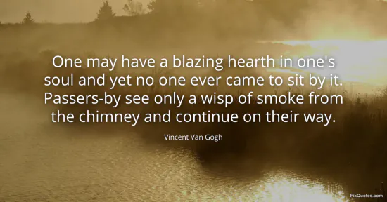 Gogh, Vincent Van. "One may have a blazing hearth in one's soul and yet no one ever came to sit by it. Passers-by see only a wisp of smoke from the chimney and continue on their way." FixQuotes. January 15, 2026. https://fixquotes.com/quotes/one-may-have-a-blazing-hearth-in-ones-soul-and-10595/.