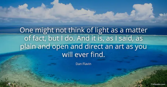 Flavin, Dan. "One might not think of light as a matter of fact, but I do. And it is, as I said, as plain and open and direct an art as you will ever find." FixQuotes. January 16, 2026. https://fixquotes.com/quotes/one-might-not-think-of-light-as-a-matter-of-fact-110231/.