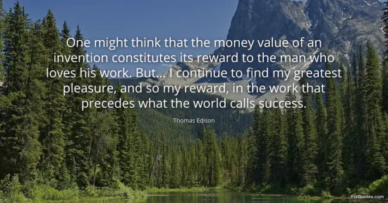 Edison, Thomas. (2026, January 18). One might think that the money value of an invention constitutes its reward to the man who loves his work. But... I continue to find my greatest pleasure, and so my reward, in the work that precedes what the world calls success. FixQuotes. https://fixquotes.com/quotes/one-might-think-that-the-money-value-of-an-10259/