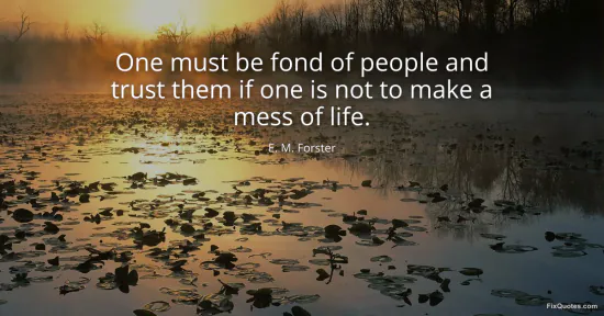 Forster, E. M. "One must be fond of people and trust them if one is not to make a mess of life." FixQuotes. January 18, 2026. https://fixquotes.com/quotes/one-must-be-fond-of-people-and-trust-them-if-one-11413/.