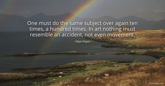 Degas, Edgar. "One must do the same subject over again ten times, a hundred times. In art nothing must resemble an accident, not even movement." FixQuotes. January 15, 2026. https://fixquotes.com/quotes/one-must-do-the-same-subject-over-again-ten-times-141296/.
