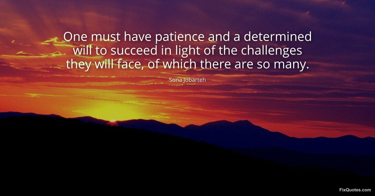 Jobarteh, Sona. (2026, February 16). One must have patience and a determined will to succeed in light of the challenges one will face, of which there are so many. FixQuotes. https://fixquotes.com/quotes/one-must-have-patience-and-a-determined-will-to-185511/