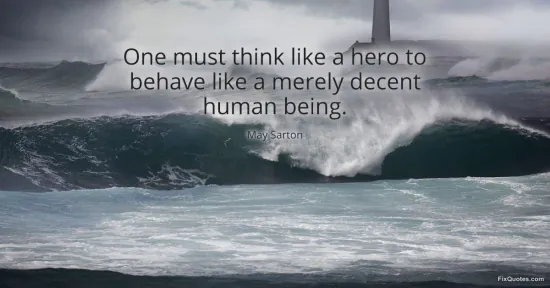 Sarton, May. (2026, January 17). One must think like a hero to behave like a merely decent human being. FixQuotes. https://fixquotes.com/quotes/one-must-think-like-a-hero-to-behave-like-a-76223/