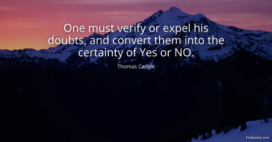 Carlyle, Thomas. "One must verify or expel his doubts, and convert them into the certainty of Yes or NO." FixQuotes. January 17, 2026. https://fixquotes.com/quotes/one-must-verify-or-expel-his-doubts-and-convert-33078/.