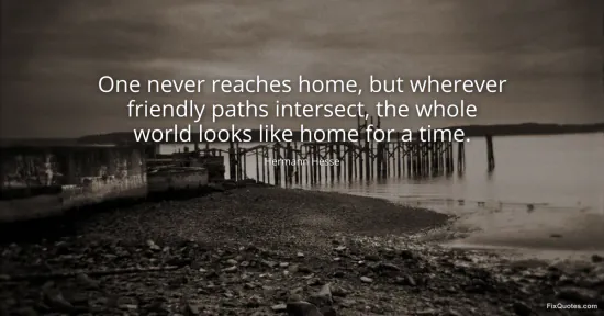 Hesse, Hermann. (2026, February 16). One never reaches home, but wherever friendly paths intersect, the whole world looks like home for a time. FixQuotes. https://fixquotes.com/quotes/one-never-reaches-home-but-wherever-friendly-142572/