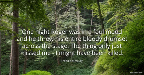 Mercury, Freddie. "One night Roger was in a foul mood and he threw his entire bloody drumset across the stage. The thing only just missed me - I might have been killed." FixQuotes. January 18, 2026. https://fixquotes.com/quotes/one-night-roger-was-in-a-foul-mood-and-he-threw-19478/.