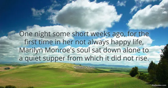 Odets, Clifford. (2026, January 16). One night some short weeks ago, for the first time in her not always happy life, Marilyn Monroe's soul sat down alone to a quiet supper from which it did not rise. FixQuotes. https://fixquotes.com/quotes/one-night-some-short-weeks-ago-for-the-first-time-119930/