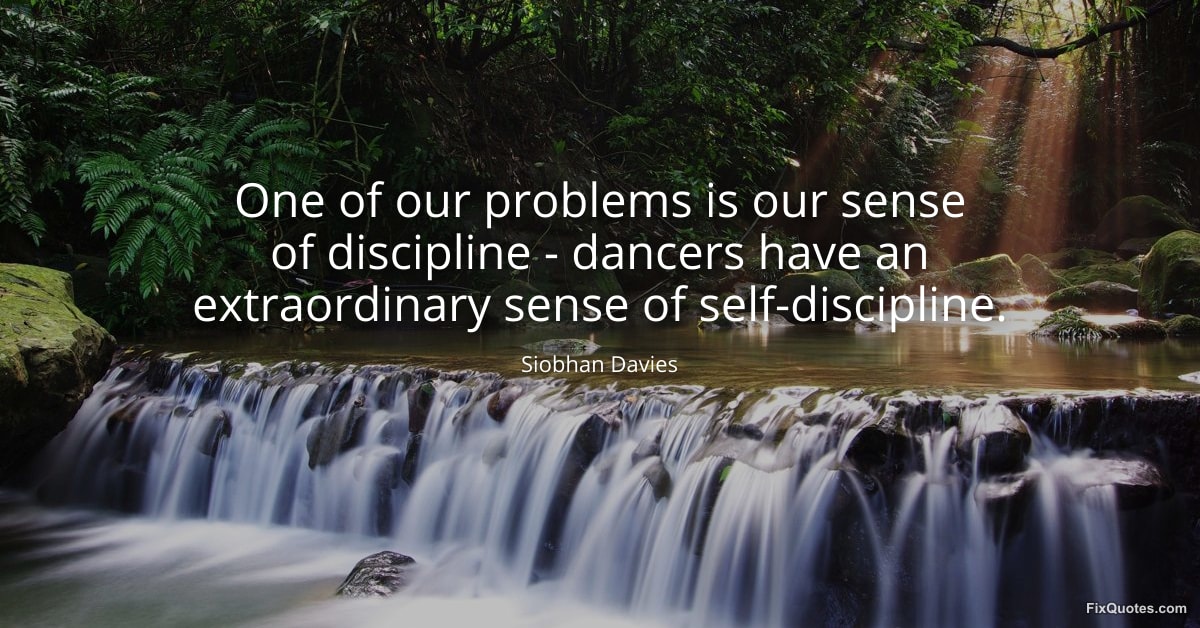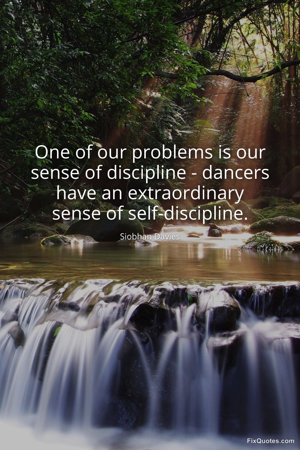 Davies, Siobhan. (2026, January 16). One of our problems is our sense of discipline - dancers have an extraordinary sense of self-discipline. FixQuotes. https://fixquotes.com/quotes/one-of-our-problems-is-our-sense-of-discipline-88259/