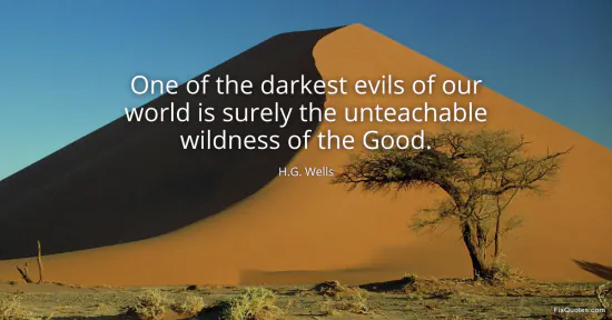 Wells, H.G. "One of the darkest evils of our world is surely the unteachable wildness of the Good." FixQuotes. January 18, 2026. https://fixquotes.com/quotes/one-of-the-darkest-evils-of-our-world-is-surely-12840/.