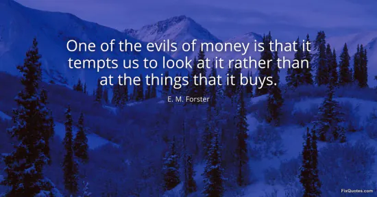 Forster, E. M. (2026, January 18). One of the evils of money is that it tempts us to look at it rather than at the things that it buys. FixQuotes. https://fixquotes.com/quotes/one-of-the-evils-of-money-is-that-it-tempts-us-to-11414/