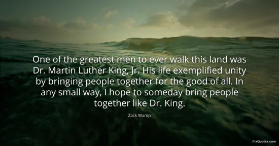 Wamp, Zack. (2026, February 18). One of the greatest men to ever walk this land was Dr. Martin Luther King, Jr. His life exemplified unity by bringing people together for the good of all. In any small way, I hope to someday bring people together like Dr. King. FixQuotes. https://fixquotes.com/quotes/one-of-the-greatest-men-to-ever-walk-this-land-77186/