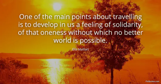 Maillart, Ella. (2026, January 17). One of the main points about travelling is to develop in us a feeling of solidarity, of that oneness without which no better world is possible. FixQuotes. https://fixquotes.com/quotes/one-of-the-main-points-about-travelling-is-to-51529/