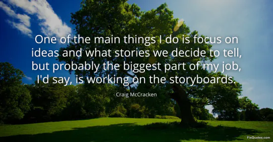 McCracken, Craig. (2026, February 16). One of the main things I do is focus on ideas and what stories we decide to tell, but probably the biggest part of my job, I'd say, is working on the storyboards. FixQuotes. https://fixquotes.com/quotes/one-of-the-main-things-i-do-is-focus-on-ideas-and-51466/