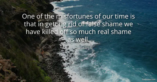 Kronenberger, Louis. (2026, January 15). One of the misfortunes of our time is that in getting rid of false shame we have killed off so much real shame as well. FixQuotes. https://fixquotes.com/quotes/one-of-the-misfortunes-of-our-time-is-that-in-152757/