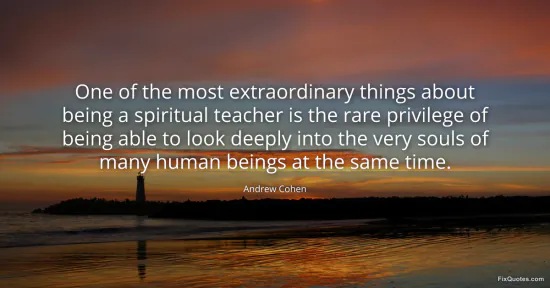 Cohen, Andrew. (2026, January 16). One of the most extraordinary things about being a spiritual teacher is the rare privilege of being able to look deeply into the very souls of many human beings at the same time. FixQuotes. https://fixquotes.com/quotes/one-of-the-most-extraordinary-things-about-being-138466/