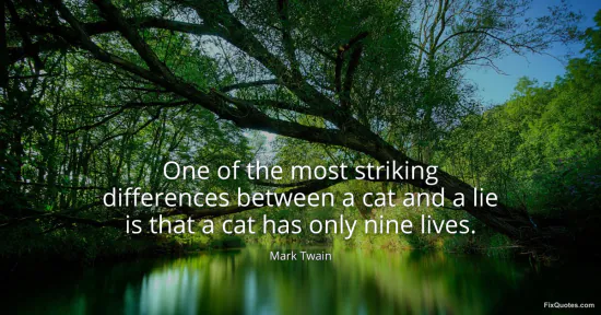 Twain, Mark. "One of the most striking differences between a cat and a lie is that a cat has only nine lives." FixQuotes. January 18, 2026. https://fixquotes.com/quotes/one-of-the-most-striking-differences-between-a-22238/.