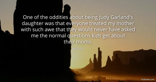Luft, Lorna. "One of the oddities about being Judy Garland's daughter was that everyone treated my mother with such awe that they would never have asked me the normal questions kids get about their moms." FixQuotes. January 15, 2026. https://fixquotes.com/quotes/one-of-the-oddities-about-being-judy-garlands-152746/.