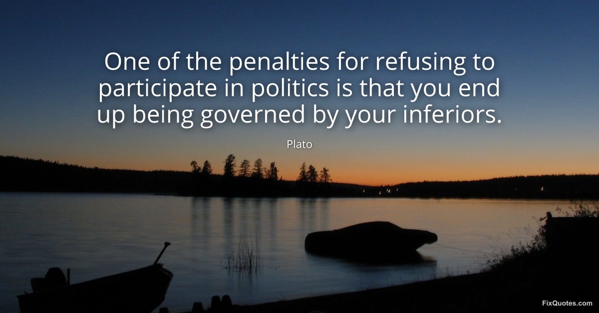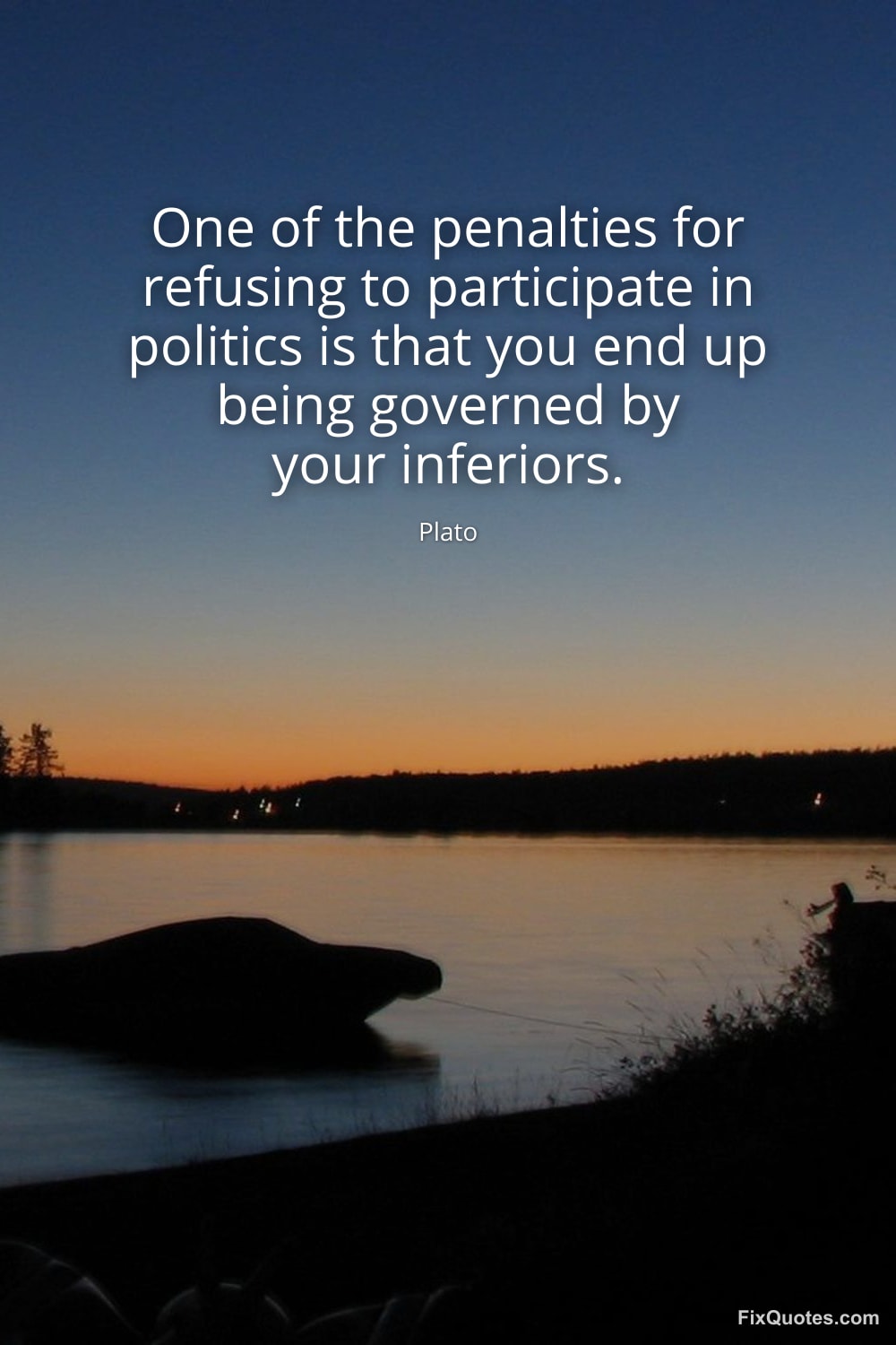 Plato. (2026, February 7). One of the penalties for refusing to participate in politics is that you end up being governed by your inferiors. FixQuotes. https://fixquotes.com/quotes/one-of-the-penalties-for-refusing-to-participate-29299/