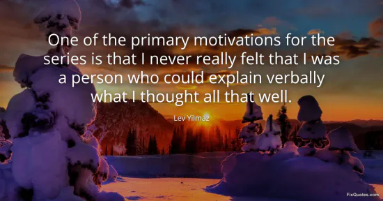 Yilmaz, Lev. "One of the primary motivations for the series is that I never really felt that I was a person who could explain verbally what I thought all that well." FixQuotes. January 16, 2026. https://fixquotes.com/quotes/one-of-the-primary-motivations-for-the-series-is-119194/.