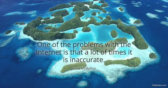 McMahon, Vince. "One of the problems with the Internet is that a lot of times it is inaccurate." FixQuotes. January 16, 2026. https://fixquotes.com/quotes/one-of-the-problems-with-the-internet-is-that-a-105527/.