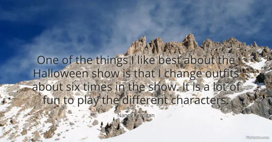Kerrigan, Nancy. (2026, January 17). One of the things I like best about the Halloween show is that I change outfits about six times in the show. It is a lot of fun to play the different characters. FixQuotes. https://fixquotes.com/quotes/one-of-the-things-i-like-best-about-the-halloween-68310/