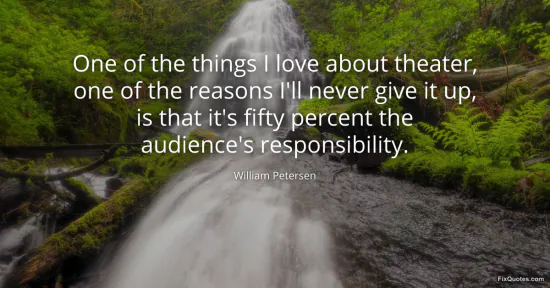 Petersen, William. (2026, January 15). One of the things I love about theater, one of the reasons I'll never give it up, is that it's fifty percent the audience's responsibility. FixQuotes. https://fixquotes.com/quotes/one-of-the-things-i-love-about-theater-one-of-the-98592/