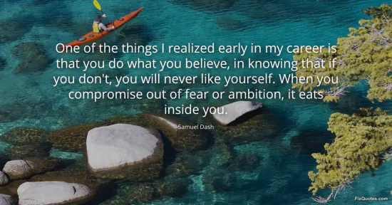 Dash, Samuel. "One of the things I realized early in my career is that you do what you believe, in knowing that if you don't, you will never like yourself. When you compromise out of fear or ambition, it eats inside you." FixQuotes. January 16, 2026. https://fixquotes.com/quotes/one-of-the-things-i-realized-early-in-my-career-123545/.