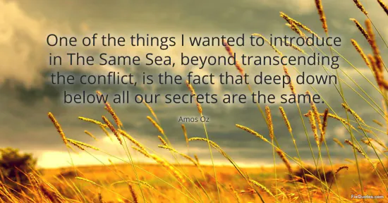 Oz, Amos. "One of the things I wanted to introduce in The Same Sea, beyond transcending the conflict, is the fact that deep down below all our secrets are the same." FixQuotes. February 19, 2026. https://fixquotes.com/quotes/one-of-the-things-i-wanted-to-introduce-in-the-43461/.