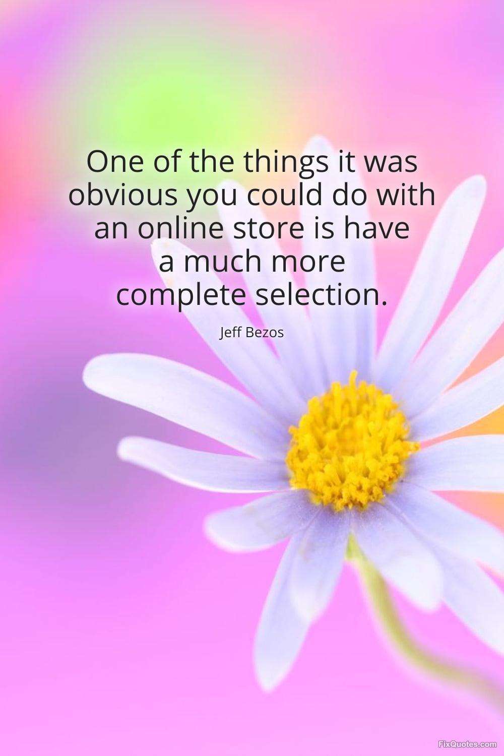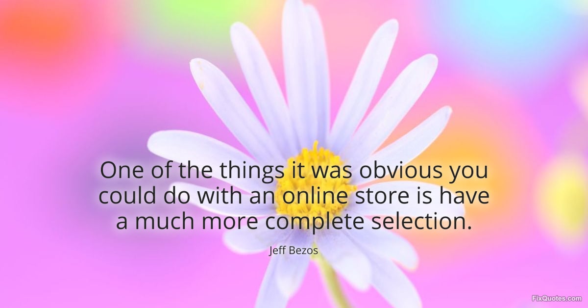 Bezos, Jeff. (2026, March 25). One of the things it was obvious you could do with an online store is have a much more complete selection. FixQuotes. https://fixquotes.com/quotes/one-of-the-things-it-was-obvious-you-could-do-186401/