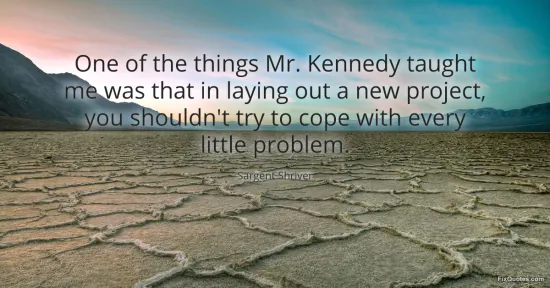 Shriver, Sargent. "One of the things Mr. Kennedy taught me was that in laying out a new project, you shouldn't try to cope with every little problem." FixQuotes. January 17, 2026. https://fixquotes.com/quotes/one-of-the-things-mr-kennedy-taught-me-was-that-76770/.