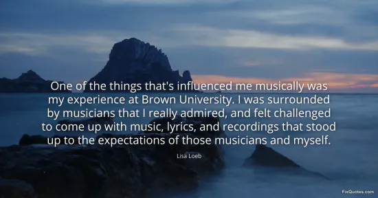 Loeb, Lisa. "One of the things that's influenced me musically was my experience at Brown University. I was surrounded by musicians that I really admired, and felt challenged to come up with music, lyrics, and recordings that stood up to the expectations of those musicians and myself." FixQuotes. January 16, 2026. https://fixquotes.com/quotes/one-of-the-things-thats-influenced-me-musically-113800/.