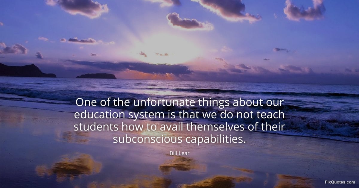 Lear, Bill. (2026, January 15). One of the unfortunate things about our education system is that we do not teach students how to avail themselves of their subconscious capabilities. FixQuotes. https://fixquotes.com/quotes/one-of-the-unfortunate-things-about-our-education-162013/