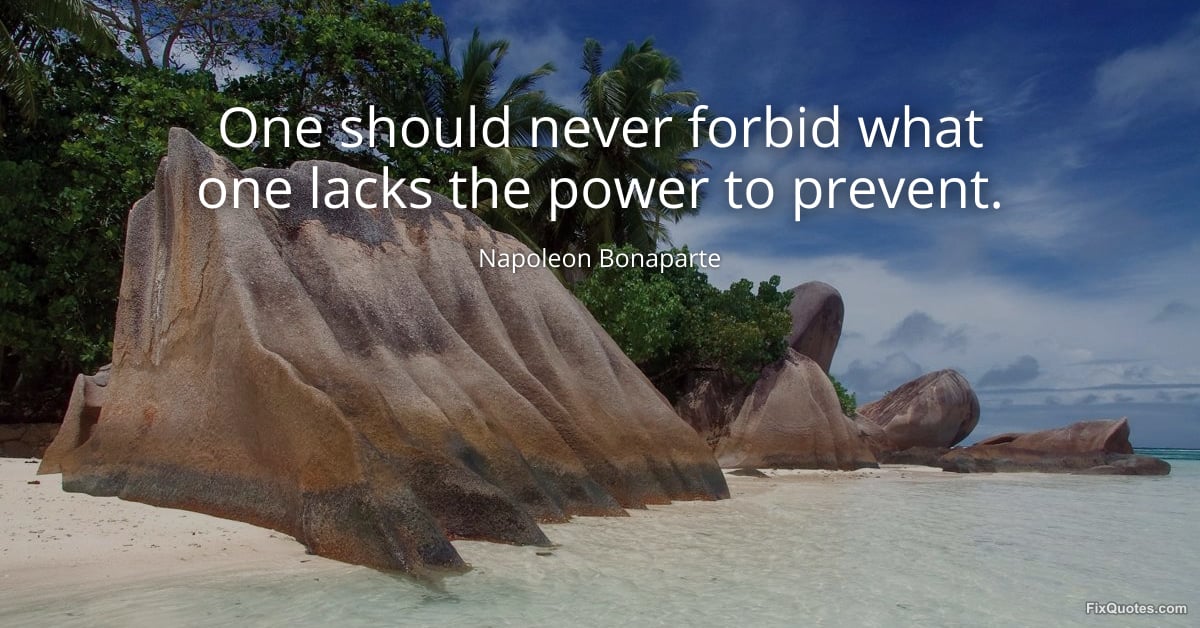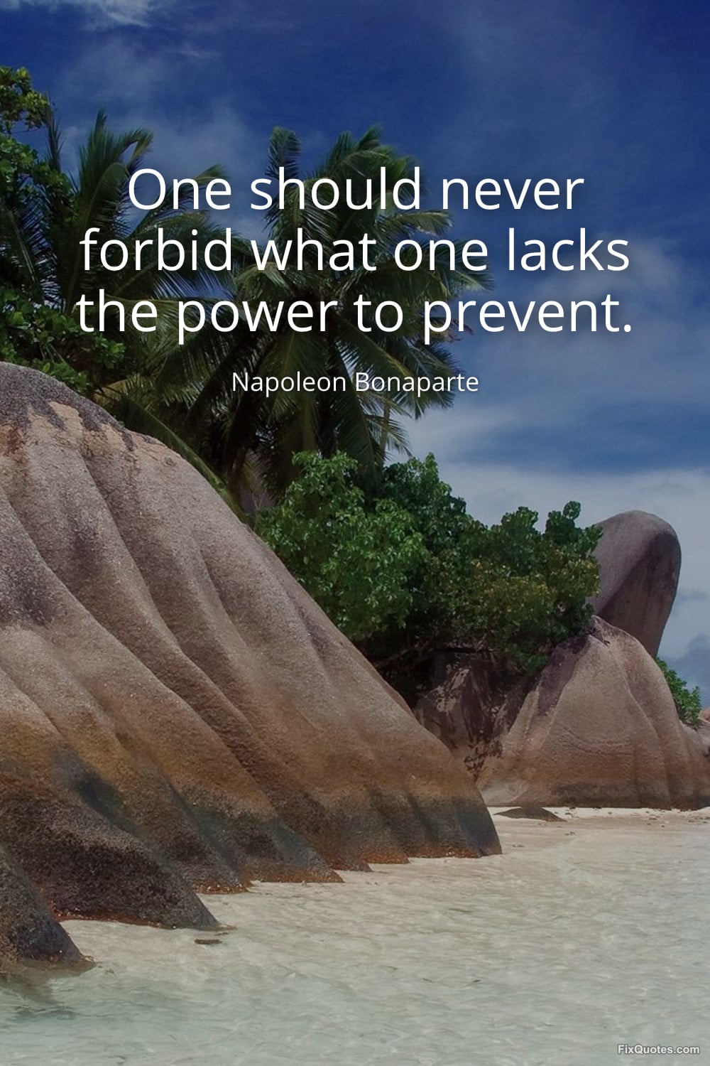 Bonaparte, Napoleon. (2026, February 15). One should never forbid what one lacks the power to prevent. FixQuotes. https://fixquotes.com/quotes/one-should-never-forbid-what-one-lacks-the-power-34184/