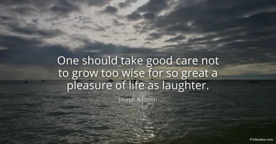Addison, Joseph. "One should take good care not to grow too wise for so great a pleasure of life as laughter." FixQuotes. January 15, 2026. https://fixquotes.com/quotes/one-should-take-good-care-not-to-grow-too-wise-157239/.
