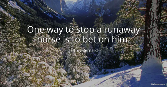 Bernard, Jeffrey. "One way to stop a runaway horse is to bet on him." FixQuotes. January 14, 2026. https://fixquotes.com/quotes/one-way-to-stop-a-runaway-horse-is-to-bet-on-him-143048/.