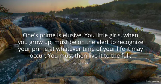 Spark, Muriel. "One's prime is elusive. You little girls, when you grow up, must be on the alert to recognize your prime at whatever time of your life it may occur. You must then live it to the full." FixQuotes. January 16, 2026. https://fixquotes.com/quotes/ones-prime-is-elusive-you-little-girls-when-you-120400/.