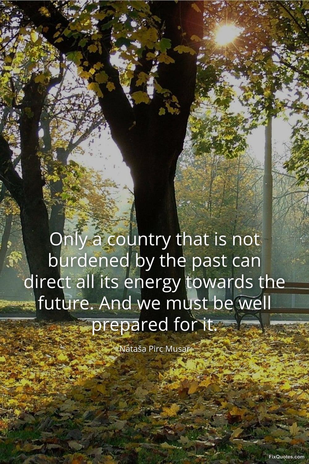 Musar, Nataša Pirc. (2026, February 18). Only a country that is not burdened by the past can direct all its energy towards the future. And we must be well prepared for it. FixQuotes. https://fixquotes.com/quotes/only-a-country-that-is-not-burdened-by-the-past-185633/