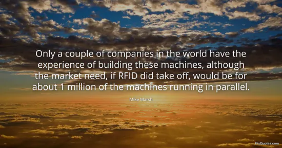 Marsh, Mike. "Only a couple of companies in the world have the experience of building these machines, although the market need, if RFID did take off, would be for about 1 million of the machines running in parallel." FixQuotes. January 16, 2026. https://fixquotes.com/quotes/only-a-couple-of-companies-in-the-world-have-the-105480/.