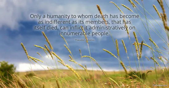 Adorno, Theodor. (2026, January 17). Only a humanity to whom death has become as indifferent as its members, that has itself died, can inflict it administratively on innumerable people. FixQuotes. https://fixquotes.com/quotes/only-a-humanity-to-whom-death-has-become-as-28505/