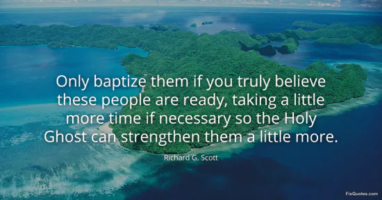 Scott, Richard G. "Only baptize them if you truly believe these people are ready, taking a little more time if necessary so the Holy Ghost can strengthen them a little more." FixQuotes. January 16, 2026. https://fixquotes.com/quotes/only-baptize-them-if-you-truly-believe-these-101478/.
