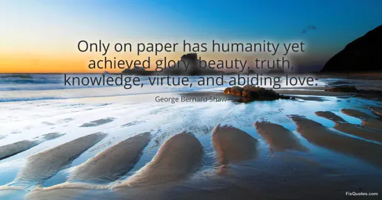 Shaw, George Bernard. "Only on paper has humanity yet achieved glory, beauty, truth, knowledge, virtue, and abiding love." FixQuotes. January 17, 2026. https://fixquotes.com/quotes/only-on-paper-has-humanity-yet-achieved-glory-29156/.