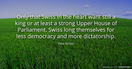 Bichsel, Peter. (2026, January 16). Only that Swiss in the heart want still a king or at least a strong Upper House of Parliament. Swiss long themselves for less democracy and more dictatorship. FixQuotes. https://fixquotes.com/quotes/only-that-swiss-in-the-heart-want-still-a-king-or-115535/