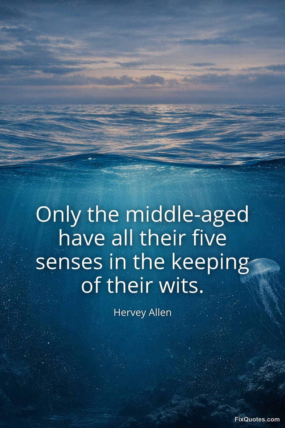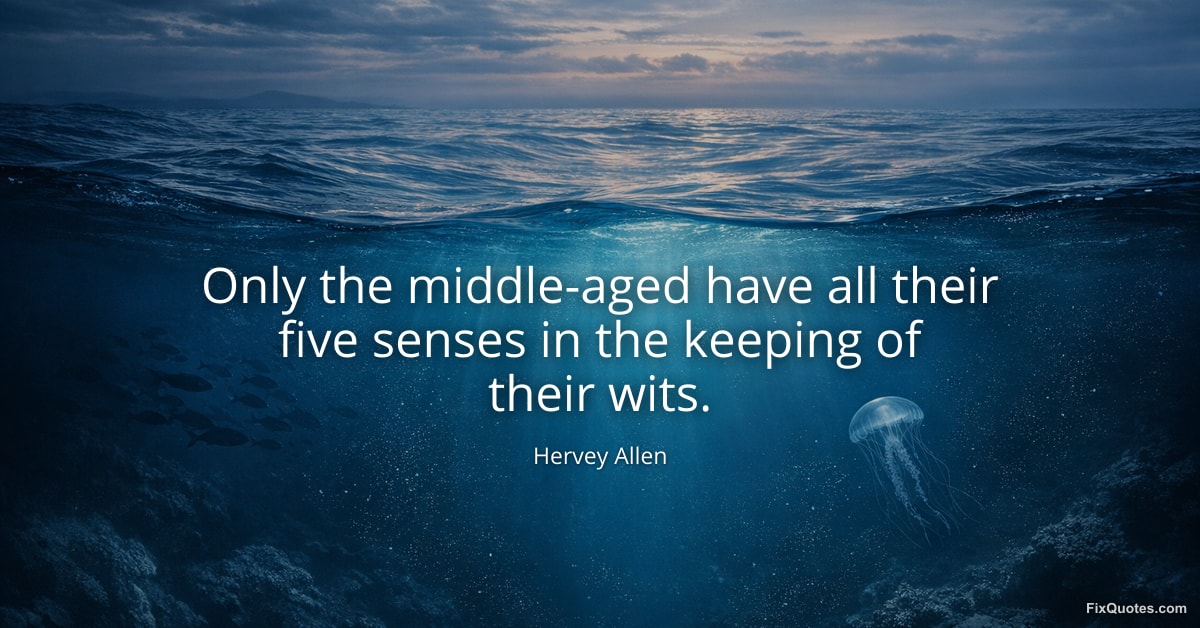 Allen, Hervey. (2026, January 24). Only the middle-aged have all their five senses in the keeping of their wits. FixQuotes. https://fixquotes.com/quotes/only-the-middle-aged-have-all-their-five-senses-59864/