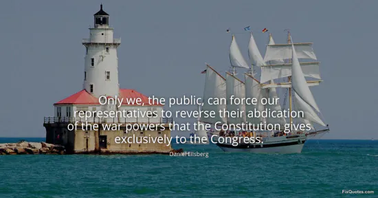 Ellsberg, Daniel. (2026, January 17). Only we, the public, can force our representatives to reverse their abdication of the war powers that the Constitution gives exclusively to the Congress. FixQuotes. https://fixquotes.com/quotes/only-we-the-public-can-force-our-representatives-68891/