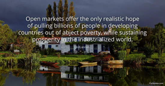 Annan, Kofi. (2026, January 14). Open markets offer the only realistic hope of pulling billions of people in developing countries out of abject poverty, while sustaining prosperity in the industrialized world. FixQuotes. https://fixquotes.com/quotes/open-markets-offer-the-only-realistic-hope-of-150698/