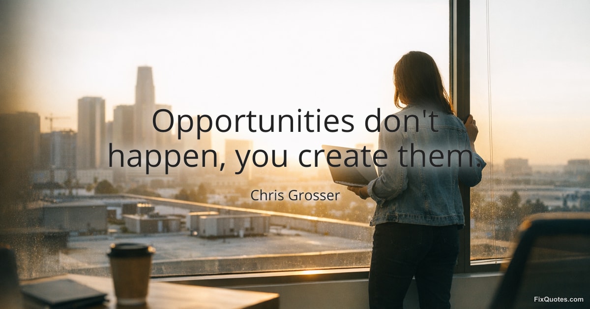 Grosser, Chris. (2026, January 13). Opportunities don't happen, you create them. FixQuotes. https://fixquotes.com/quotes/opportunities-dont-happen-you-create-them-183830/