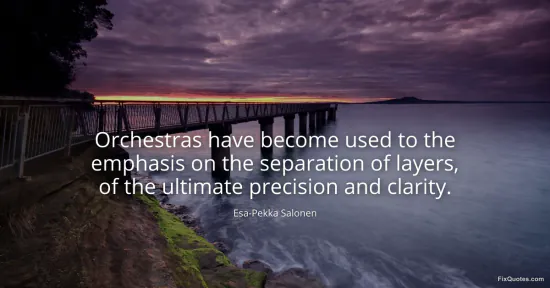 "Orchestras have become used to the emphasis on the separation of layers, of the ultimate precision and clarity." FixQuotes, 17 Jan. 2026, https://fixquotes.com/quotes/orchestras-have-become-used-to-the-emphasis-on-47382/. Accessed 12 Feb. 2026.