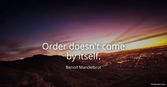 Mandelbrot, Benoit. (2026, January 15). Order doesn't come by itself. FixQuotes. https://fixquotes.com/quotes/order-doesnt-come-by-itself-9907/