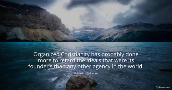 Gallienne, Richard Le. "Organized Christianity has probably done more to retard the ideals that were its founder's than any other agency in the world." FixQuotes. January 16, 2026. https://fixquotes.com/quotes/organized-christianity-has-probably-done-more-to-89877/.
